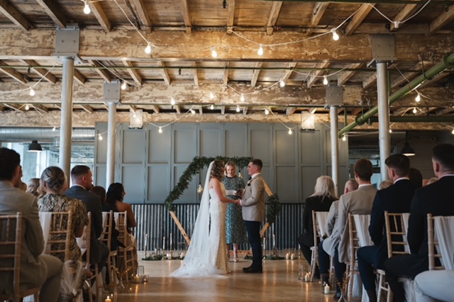 For your drinks reception and wedding breakfast you also have the option of using the brasserie, which has a real art deco vibe, with sumptuous furnishings and gorgeous lighting. Holmes Mill has so many great photo opportunities, with festoon lighting outside, a red double decker bus parked up for you to hop on, and loads of cosy corners you can snuggle up in.